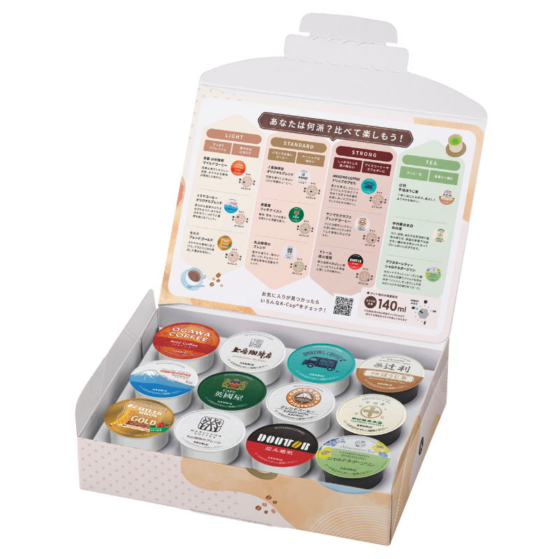家族や友人みんなで楽しめるアソートボックスをはじめ、コーヒー、紅茶、お茶からひとつずつカプセルをピックアップし、さらにカフェオレ専用のカプセルもセレクトした、バラエティ豊かなセットをご用意!